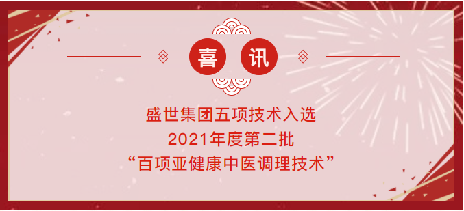 喜訊 | 盛世集團(tuán)五項(xiàng)技術(shù)入選“百項(xiàng)亞健康中醫(yī)調(diào)理技術(shù)”