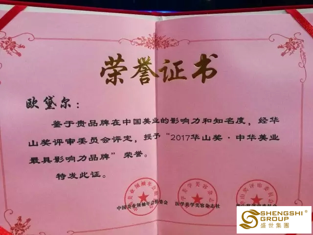 最新喜報!盛世集團歐黛爾品牌榮獲2017華山獎-中華美業最具影響力品牌!