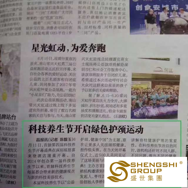 于盛世而言,這是社會各媒體對【綠色護頸運動】傳播健康與愛的極大支持與助力,同時,這也是一份來自社會對盛世企業的十足認可。
