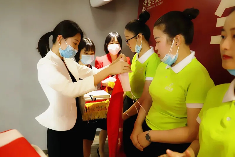 儀式上,盛世集團(tuán)何總、吳董為新家人授予入職戰(zhàn)袍、戰(zhàn)徽、戰(zhàn)旗。現(xiàn)場(chǎng)吳董致辭歡迎,給予新成員強(qiáng)大的力量。