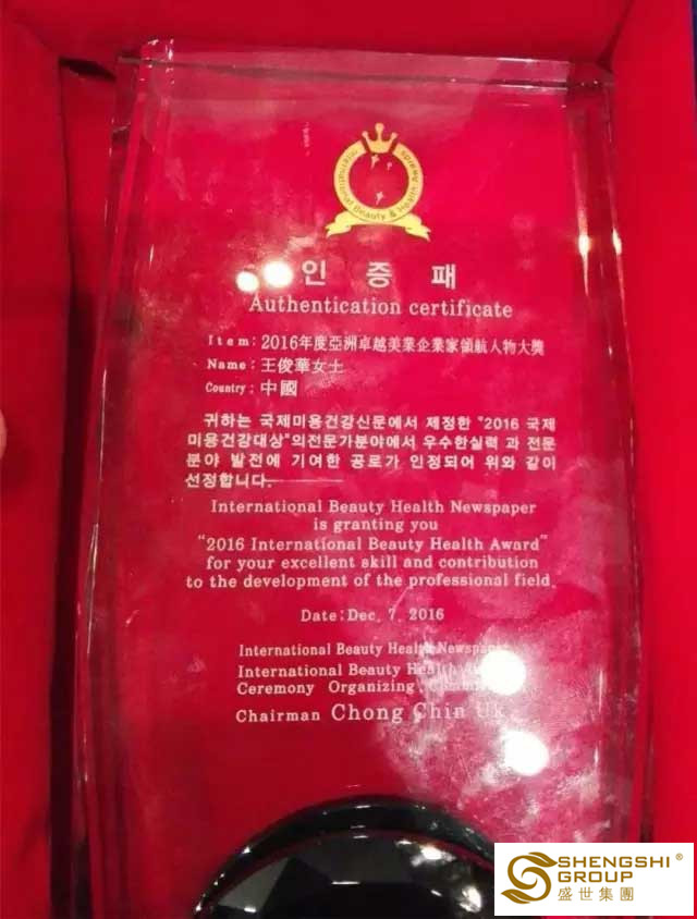 盛世董事長王俊華女士榮獲“2016年度亞洲卓越美業企業家領航人物大獎”