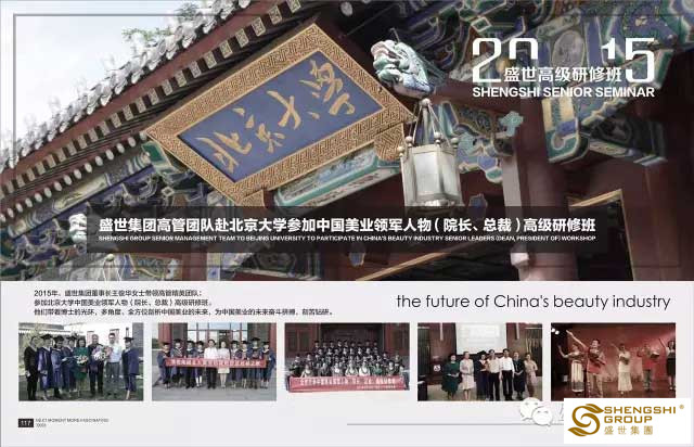 2015年,董事長王俊華女士攜盛世高管團隊一同赴北京大學,參加中國美業領軍人物(院長、總裁)高級研修班。