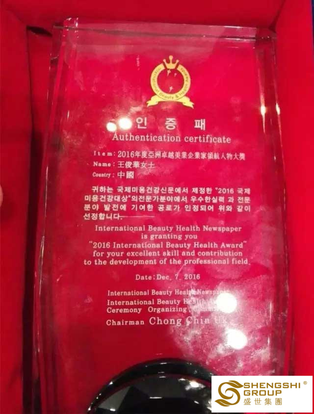 【2016年6月】盛世集團榮獲“國際美容卓越品牌大獎”